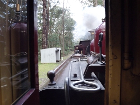 Although Wright is not a scheduled stop on Puffing Billy's trip to Gembrook, the tiny waiting shed can be seen to the left shortly before crossing the first of three trestle bridges. Although with spectacular views of towering gum trees pressed hard up against the line on either side, you may be forgiven for missing it altogether. When passing by Wright on a cold winter's day in July 2015, I had the warmest seat on the train, the fireman's seat. Courtesy of the Puffing Billy Railway, I was able to spend the day shadowing driver Steve and fireman Brenton aboard locomotive 12A on the run to Gembrook and back for my upcoming book.